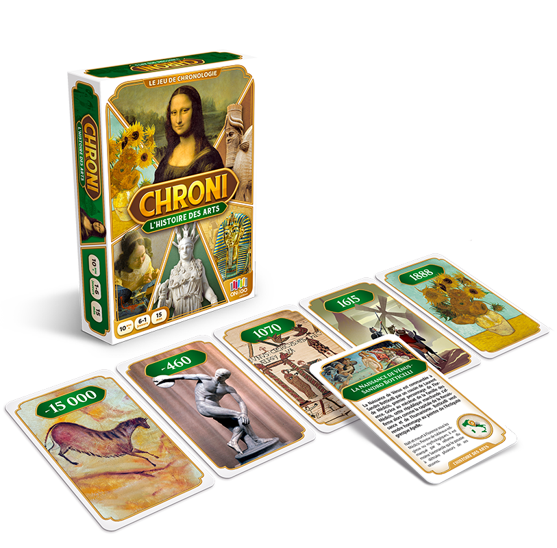 Chroni – L’histoire des Arts est un jeu d’apprentissage avec auquel on s’amuse à mémoriser progressivement et durablement les grandes dates. Idéal pour les curieux qui souhaitent découvrir ou redécouvrir l’Histoire en toute ou simplicité ou les amateurs qui veulent consolider leurs connaissances.