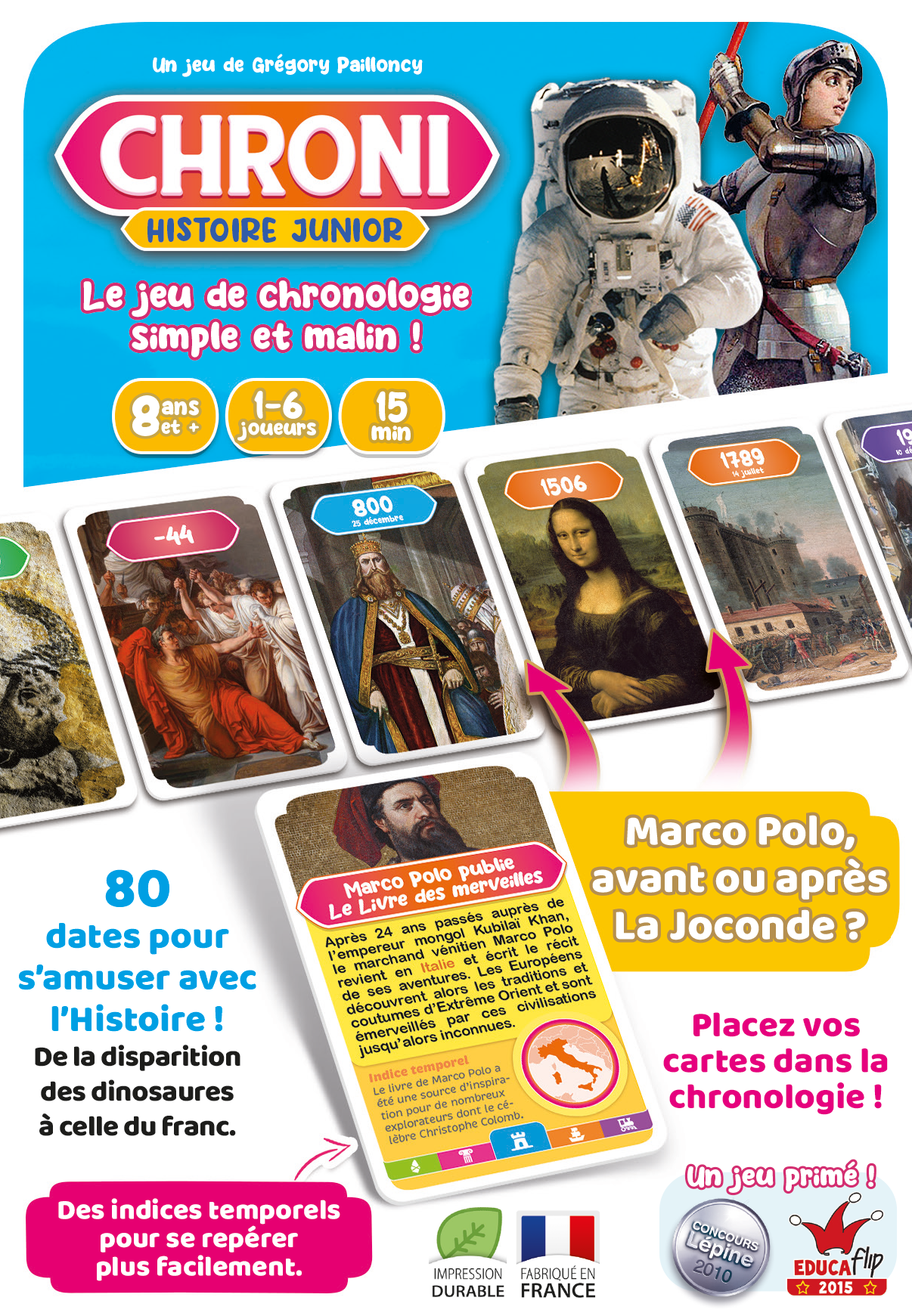 Dans Histoire Junior, retrouvez 80 événements spécialement choisis pour les enfants, de la disparition des dinosaures (vers – 65 millions d’années) jusqu’à la disparition du franc (2002).